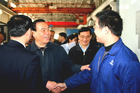 在集團(tuán)公司董事長(zhǎng)朱金根的陪同下,呂省長(zhǎng)等省市領(lǐng)導(dǎo)實(shí)地考察了精機(jī)公司和恒溫裝配車間。