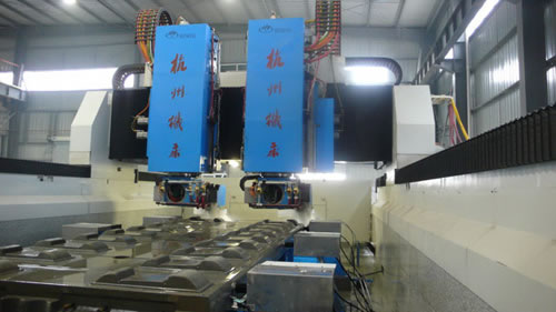 圖為杭機研制的數(shù)控軌道板磨床在中鐵四局石武客專河南段新鄭板廠投入使用。